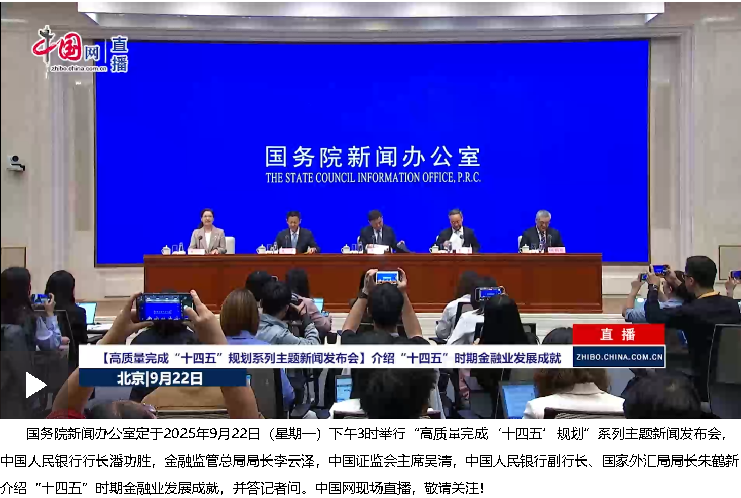 9月22日,國(guó)務(wù)院新聞辦公室在北京舉行“高質(zhì)量完成‘十四五’規(guī)劃”系列主題新聞發(fā)布會(huì),中國(guó)人民銀行行長(zhǎng)潘功勝,金融監(jiān)管總局局長(zhǎng)李云澤,中國(guó)證監(jiān)會(huì)主席吳清,中國(guó)人民銀行副行長(zhǎng)、國(guó)家外匯局局長(zhǎng)朱鶴新介紹“十四五”時(shí)期金融業(yè)發(fā)展情況,并答記者問(wèn)。新華社記者 李鑫 攝