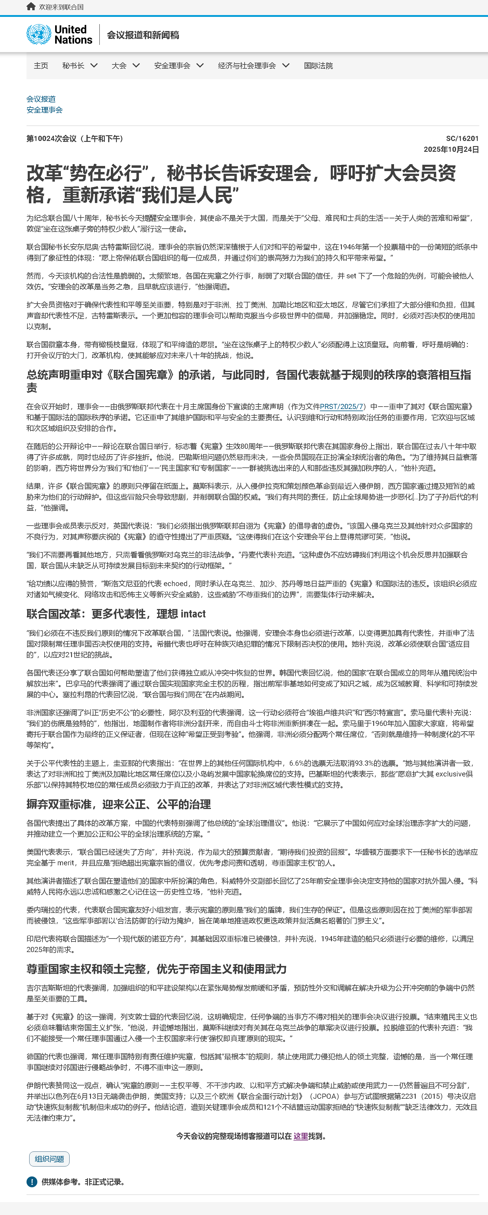 新華社聯(lián)合國(guó)10月24日電 今年10月24日是《聯(lián)合國(guó)憲章》生效80周年紀(jì)念日。聯(lián)合國(guó)安理會(huì)當(dāng)天舉行“展望聯(lián)合國(guó)未來(lái)”公開(kāi)辯論會(huì)。中國(guó)常駐聯(lián)合國(guó)代表傅聰在會(huì)上發(fā)言,他指出中國(guó)領(lǐng)導(dǎo)人提出的全球治理倡議對(duì)聯(lián)合國(guó)未來(lái)發(fā)展具有很強(qiáng)的指導(dǎo)意義。