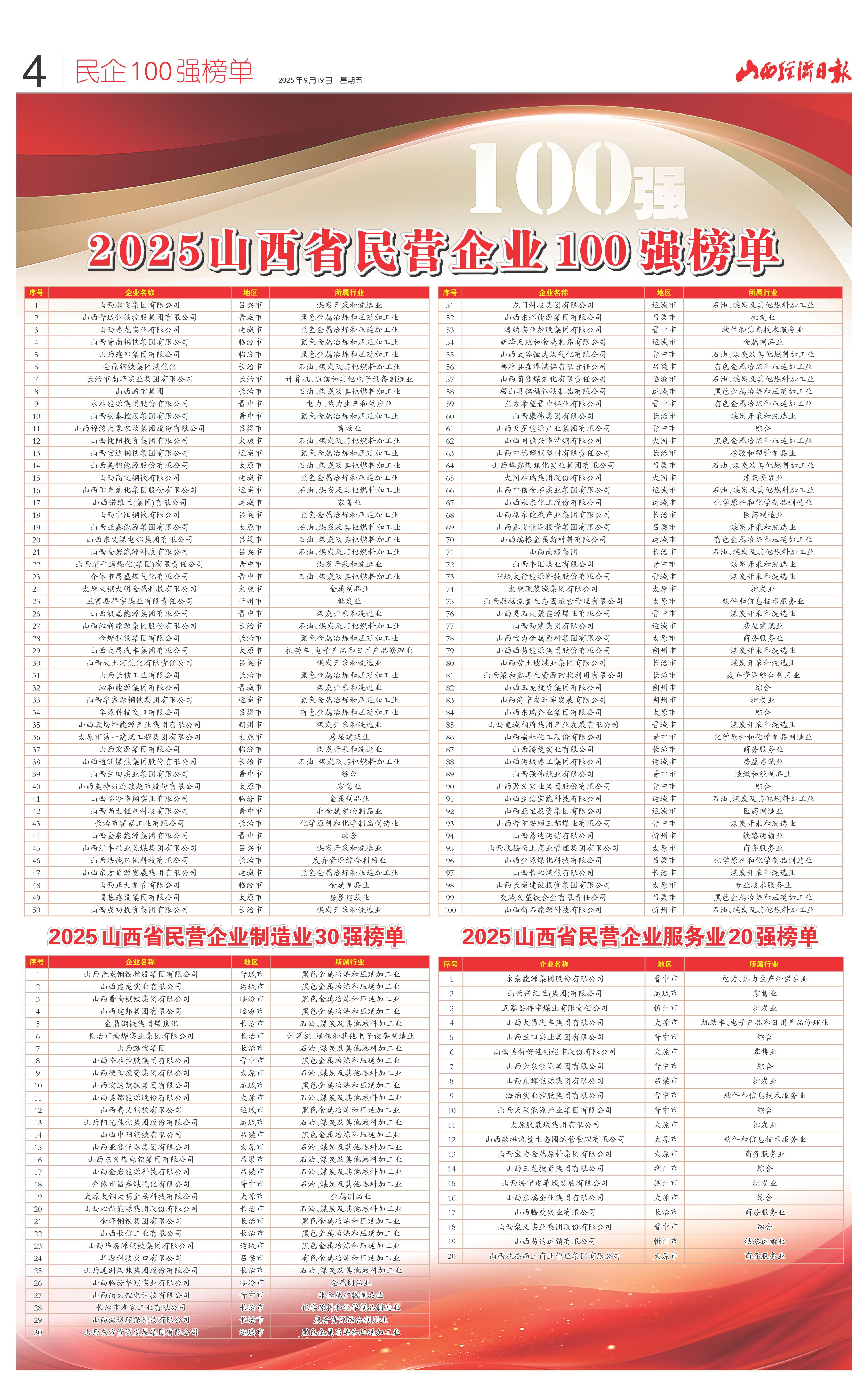 2025山西省民營(yíng)企業(yè)100強(qiáng)榜單